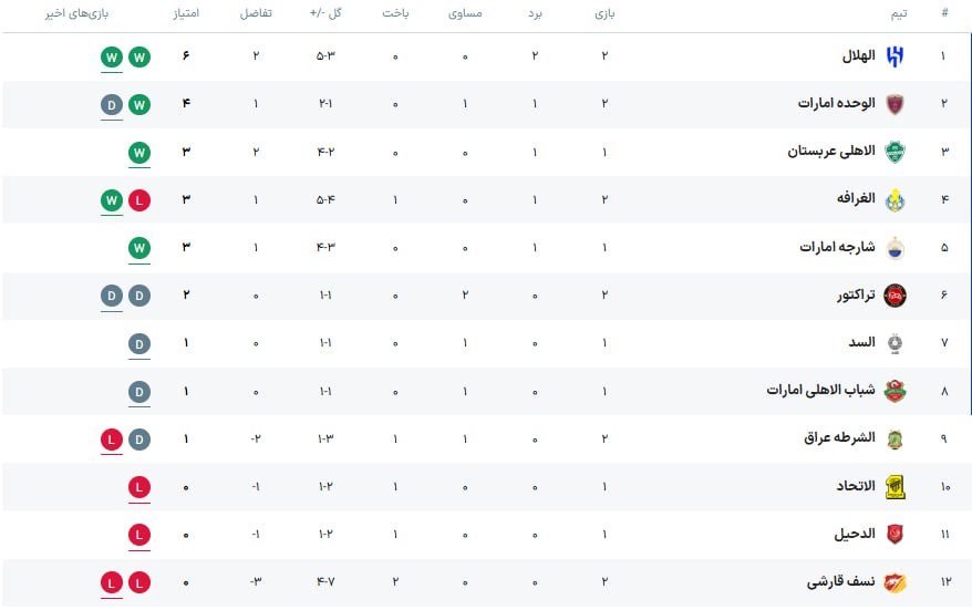 جدول لیگ نخبگان آسیا