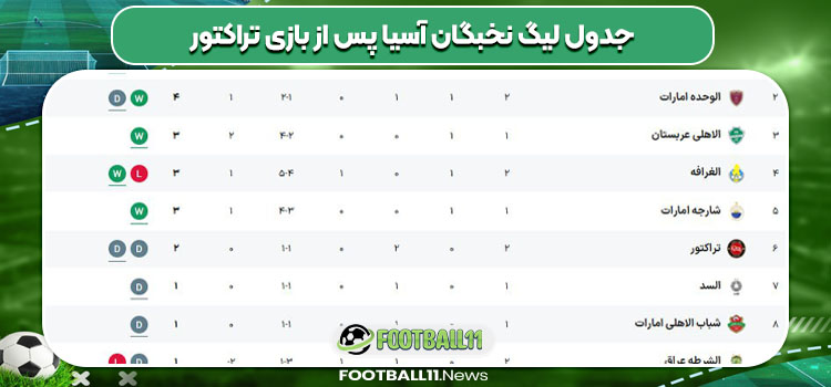 جدول لیگ نخبگان آسیا تراکتور